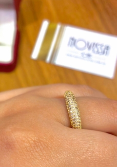 Anel folheado, base de metal, que combina a aparência do ouro com um preço mais acessível;
