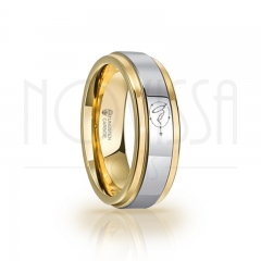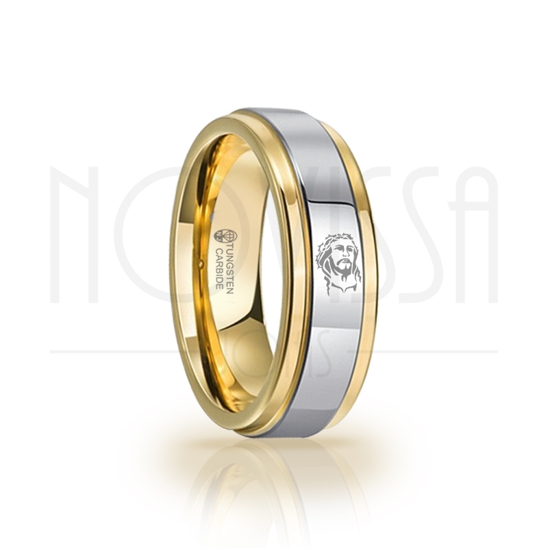 NOSSA SENHORA TERÇO ANEL DE TUNGSTÊNIO MAGNETIZADA A OURO ROSÉ COM ACABAMENTO PREMIUM DE ALTO BRILHO