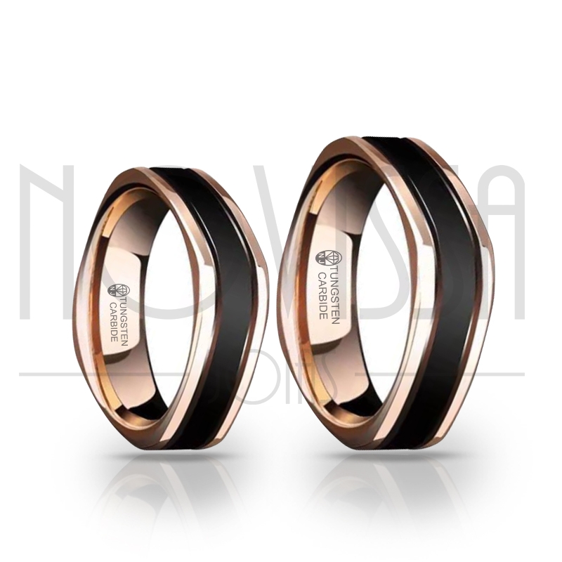 Anel de Tungstênio magnetizado a ouro rosé 18k interno e laterais e Titânio para obter a cor preta, acabamento central externo fosco.