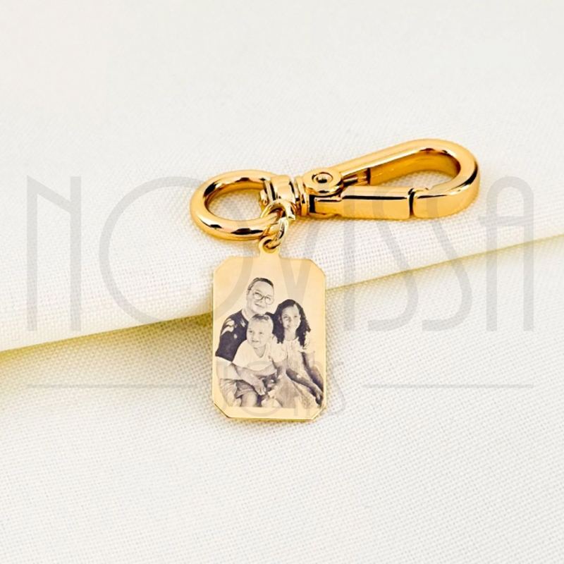 CHAVEIRO COM MEDALHA -SHINE PLATE - FOLHEADA A OURO