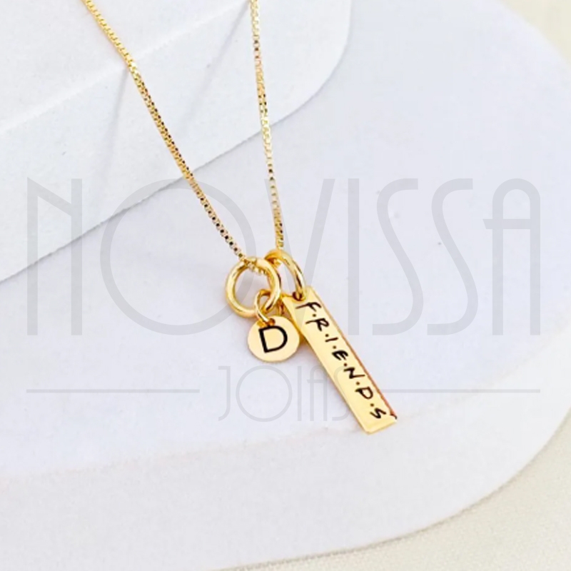 CORDÃO COM MEDALHA - CIRCULO E PLACA - FOLHEADA A OURO