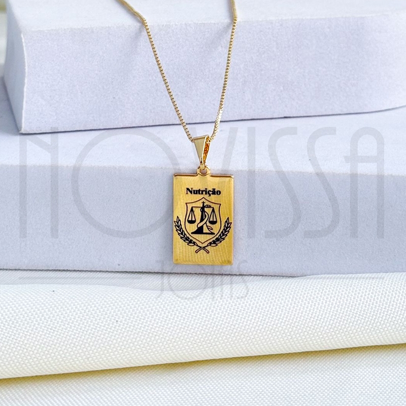 CORDÃO COM MEDALHA - FOLHEADA A OURO* 2cm x 1,3cm