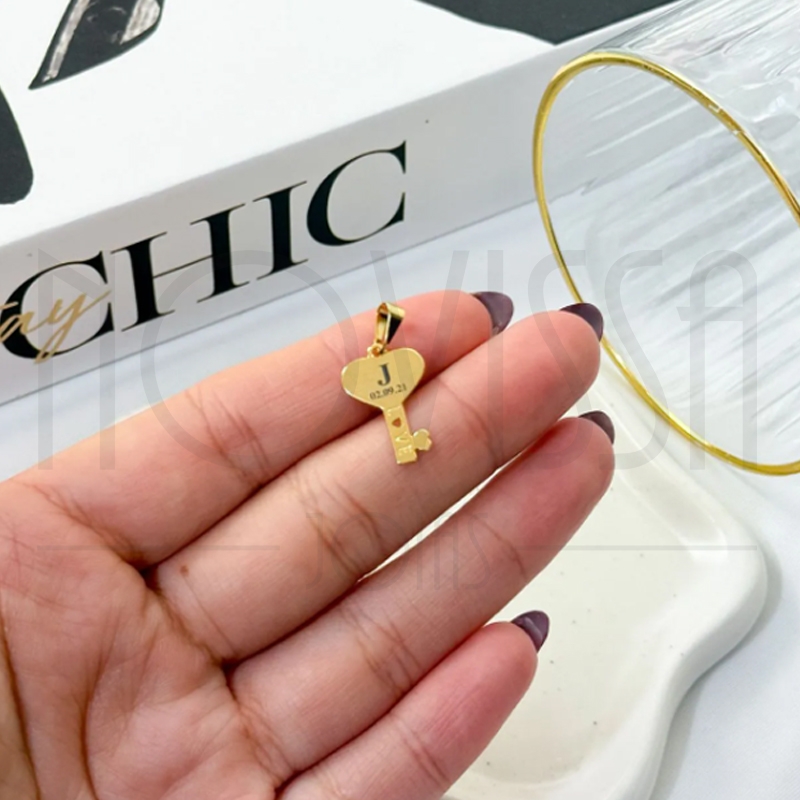 CORDÃO COM MEDALHA - GOLD KEY - FOLHEADA A OURO