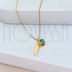 CORDÃO COM MEDALHA - QUEBRA-CABEÇAS - FOLHEADA A OURO* 0,75cm