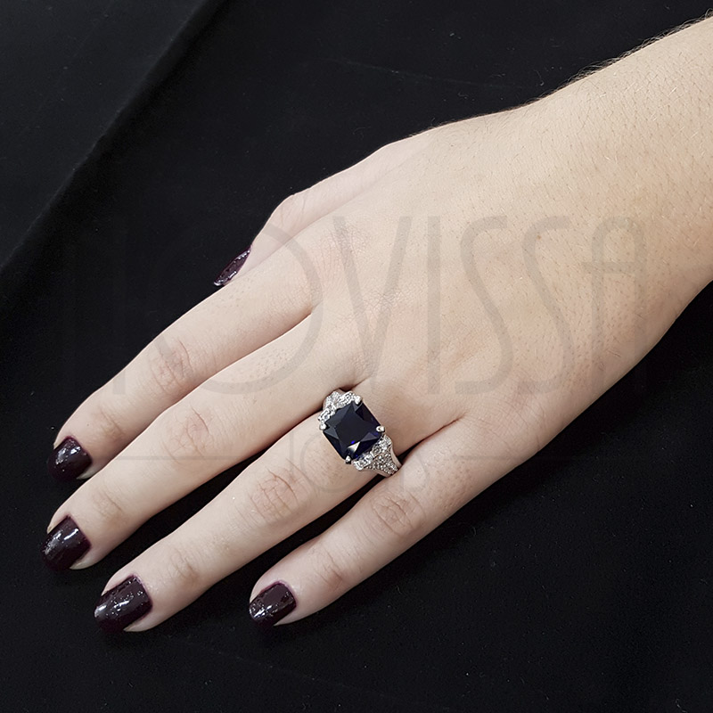 #DARK AQUAMARINE# ANEL FOLHEADO A PRATA 925S COM CRISTAIS DE SWAROVSKI