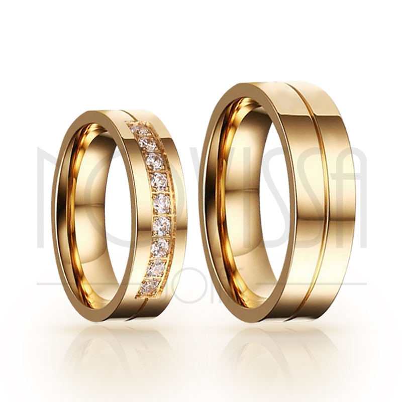 #DIAMOND# ALIANÇAS DE AÇO 316L COM OU SEM 12 CRISTAIS DE SWAROVSKI, ACABAMENTO DE ALTO BRILHO