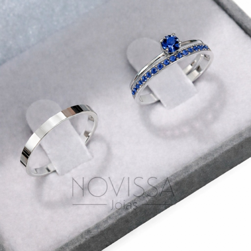 HEAVEN - PAR DE ALIANÇAS + ANEL SOLITARIO EM PRATA950 COM LINDO CRISTAL DE SWAROVSKI