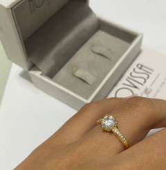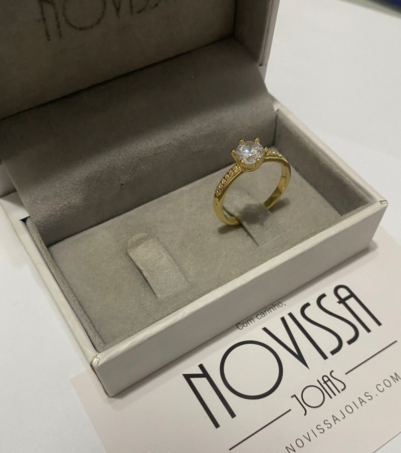 Anel folheado, base de metal, que combina a aparência do ouro com um preço mais acessível;