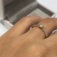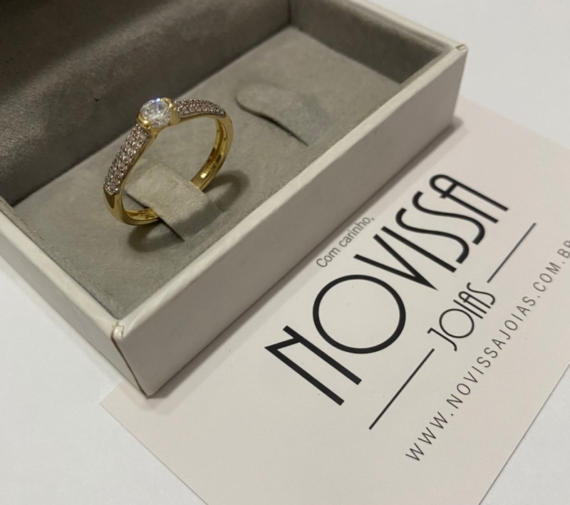 Anel folheado, base de metal, que combina a aparência do ouro com um preço mais acessível;