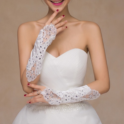 LUVA DE CETIM BRANCA COM LINDOS DETALHES EM RENDA PARA CASAMENTO