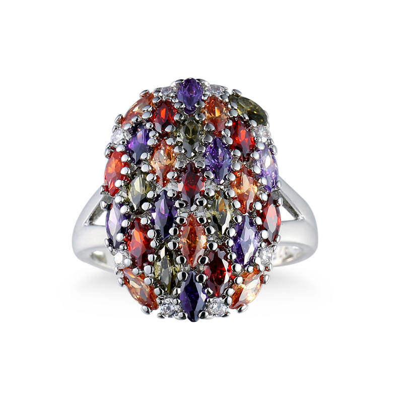#Multi Color# Anel folheado a prata 925s em um lindo design de swarovski multicor