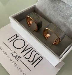 Tungstênio com detalhes fosco e bordas/parte interna rosê,