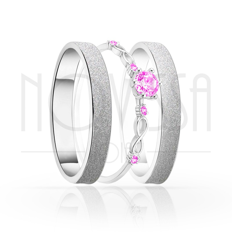 PEÔNIA - TRIO EM PRATA950 ANEL COM LINDO CRISTAL ACABAMENTO DIAMANTADO